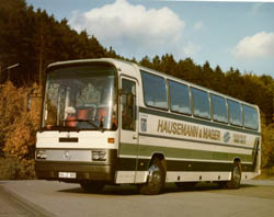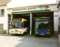 1928 Gründung des heutigen Unternehmens Hausemann & Mager als Omnibusunternehmen Hausemann & Co. Am 23. März 1928 wurde der Linienverkehr mit einem Kraftomnibus zwischen Hohenlimburg Innenstadt und dem "Lahmen Hasen" (Obernahmer) eingerichtet. In ähnlicher Form wird die Linie noch heute gefahren (538 Elsey-Obernahmer) Rechts von der zum Betrieb gehörenden öffentlichen Tankstelle befindet sich das Cafe "Klein Heidelberg"
