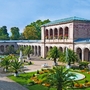 Blick auf den Rosengarten mit Regentenbau in Bad Kissingen