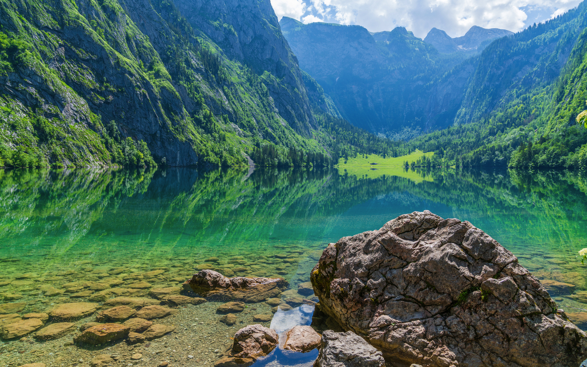 Blick auf den Obersee beim Königssee in Berchtesgaden