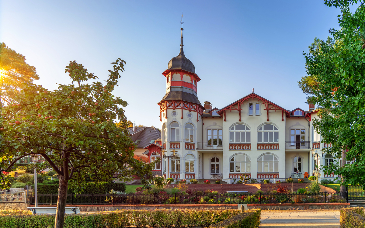 Genießen Sie den Besuch der kaiserlichen Seebäder Bansin, Heringsdorf und Ahlbeck mit ihrer prachtvollen Bäderarchitektur auf der deutschen Seite der Sonneninsel. Giebel an Giebel bilden herrschaftliche Bädervillen hier ein einzigartiges architektonisches Ensemble aus dem späten 19. und beginnenden 20. Jahrhundert. Elegant herausgeputzt erzählen Ihnen die eleganten Bauwerke vom barock- oder klassizistisch-, französisch- oder italienischen Geschmack ihrer Bauherren.