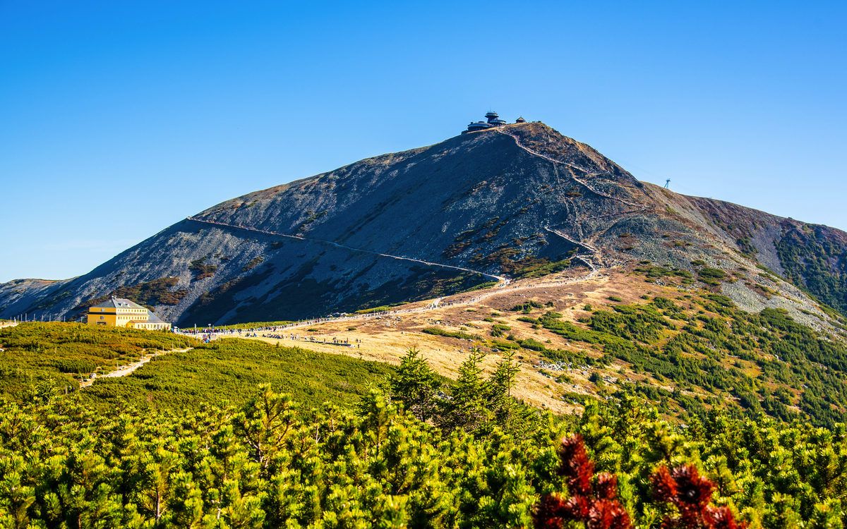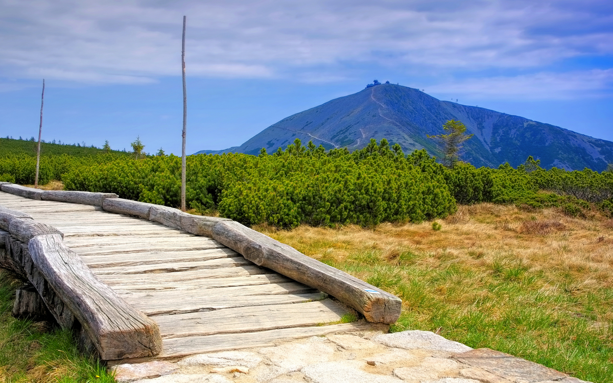 Gelegenheit zur Auffahrt auf die Schneekoppe mit herrlicher Aussicht. Weiter zur kuriosen Holzstabkirche Wang.
