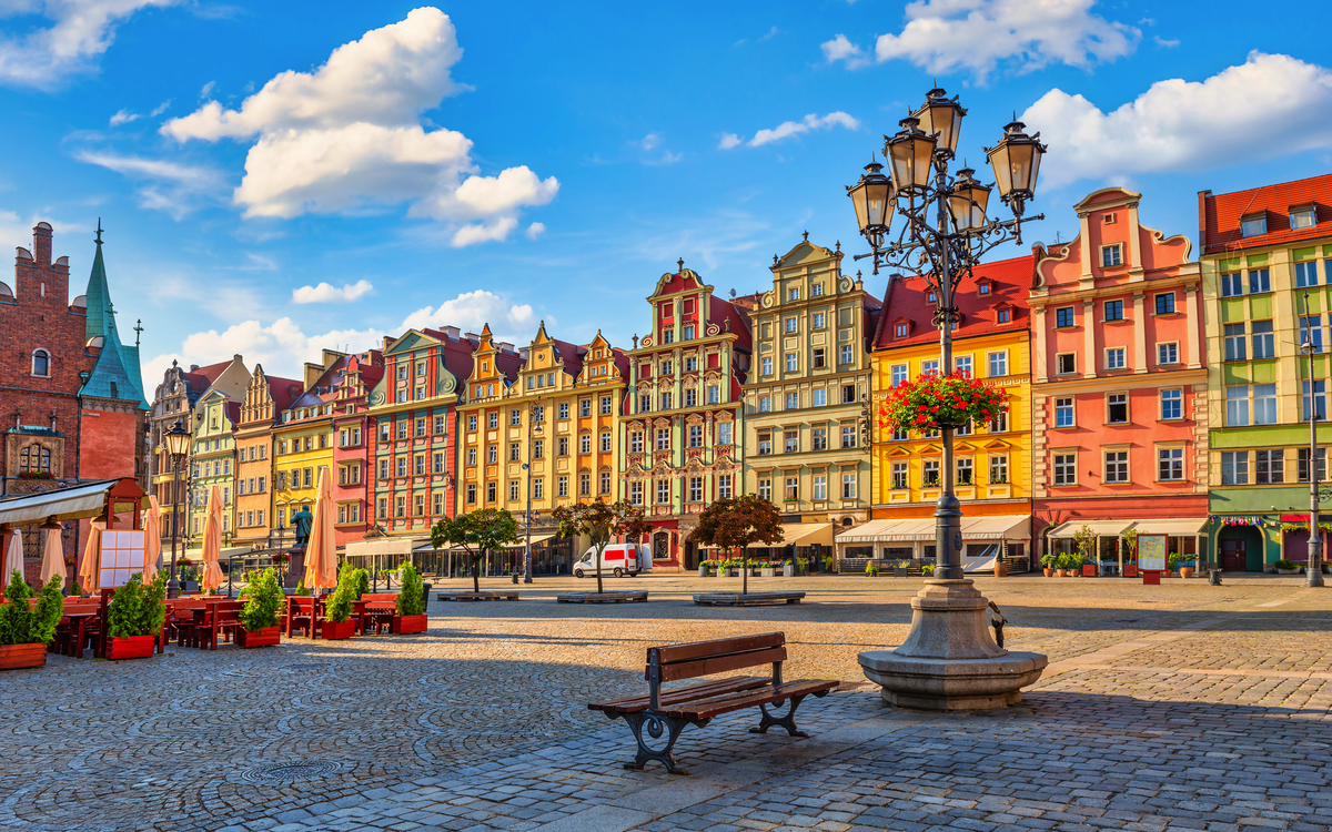 Über Schweidnitz mit Friedenskirche nach Breslau. Idyllisch an der Oder gelegen, begeistert Breslau mit wunderschöner historischer Architektur, gemütlichen Cafés und viel Kultur. Breslau wird häufig auch als Venedig des Ostens bezeichnet, denn neben 12 Inseln gibt es weit über 120 Brücken und die Oder fließt durch die Stadt wie eine Lebensader.