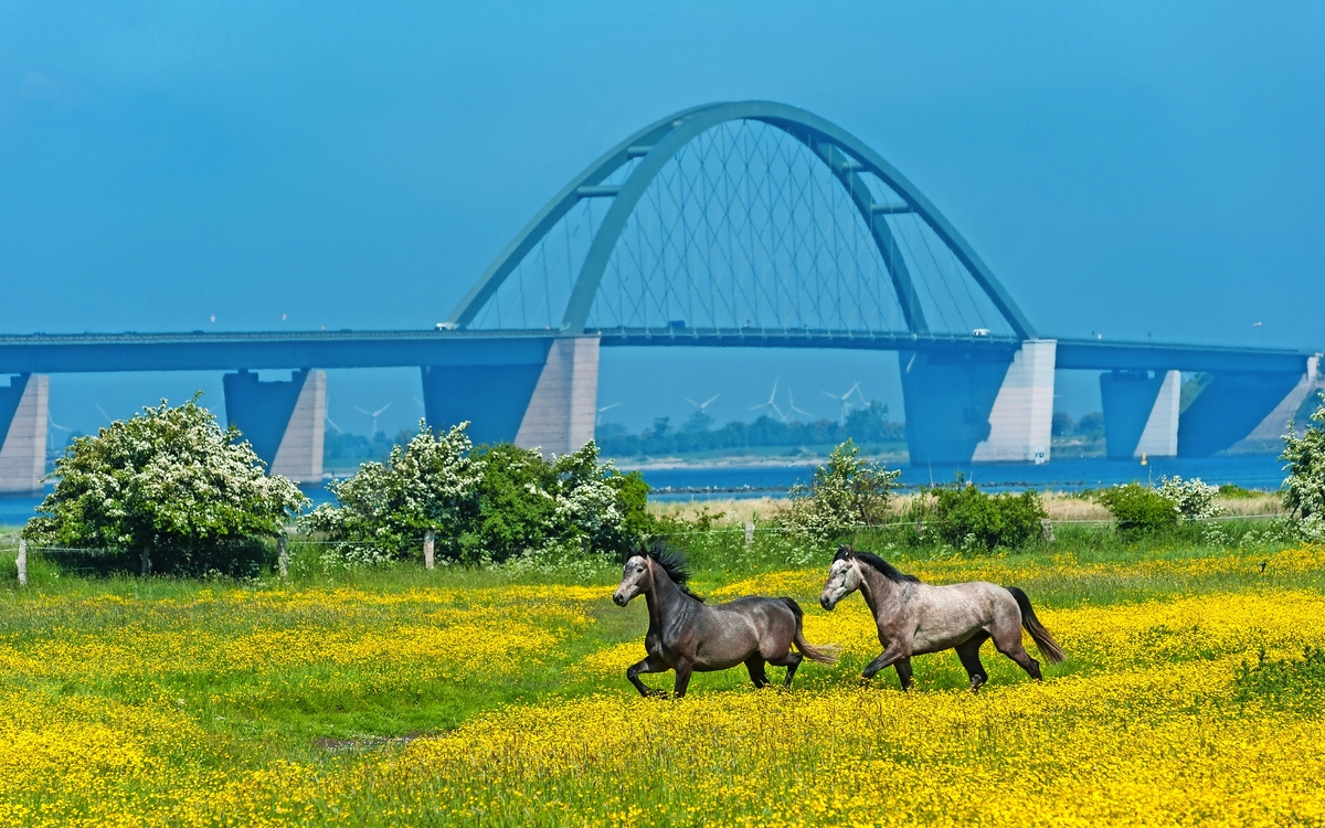 Fahrt über die Fehmarnsundbrücke nach Fehmarn. Unternehmen Sie einen ersten Strandspaziergang.