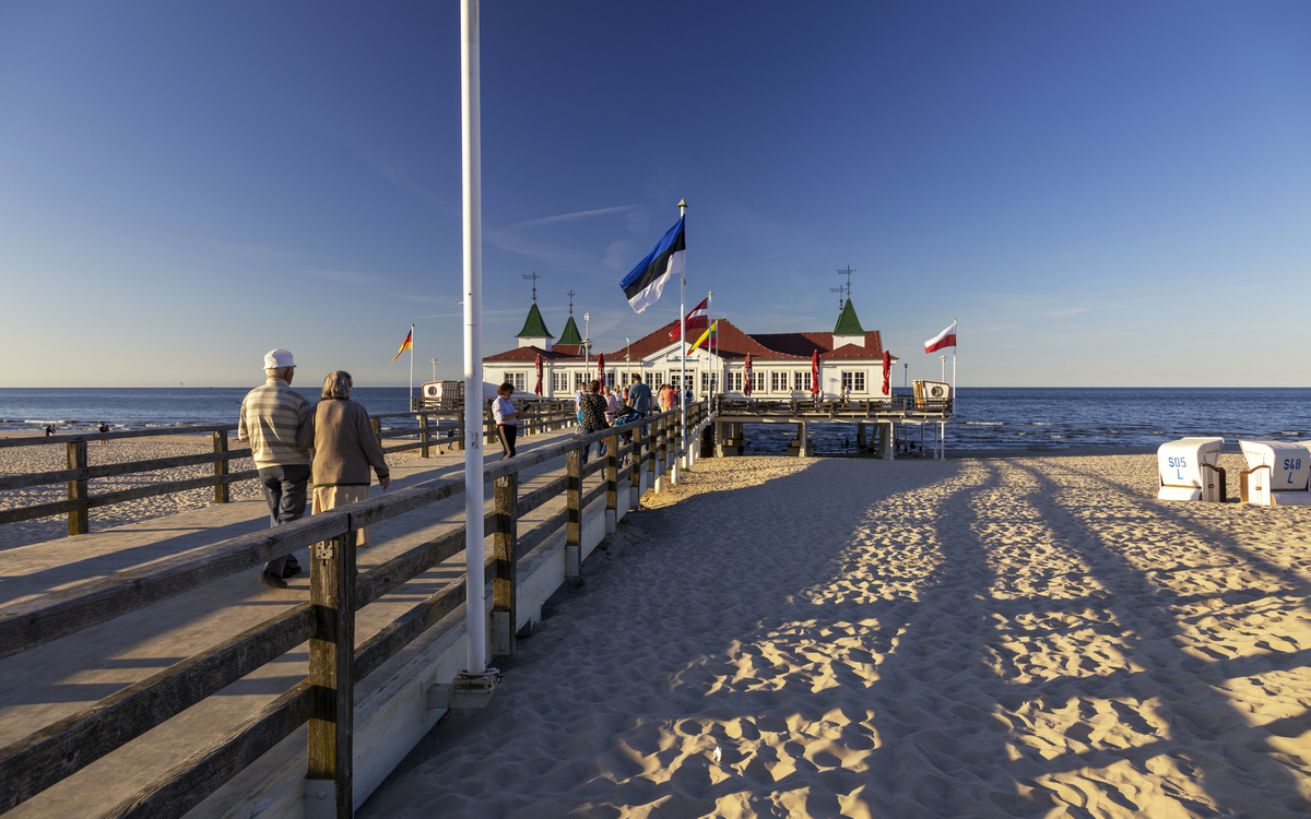 • Schifffahrt auf dem ruhigen Achterwasser, der Lagune des in die Ostsee ragenden Peenestroms. Anschließend Fahrt nach Swinemünde, ein moderner Kurort an der polnischen Ostseeküste. Hier haben Sie Zeit zum Bummeln auf der Promenade.