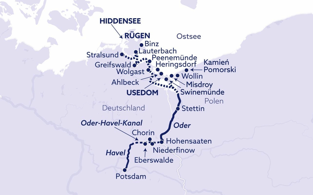 Nach der Anreise bieten wir eine interessante Stadtrundfahrt durch Potsdam an (fakultativ), bevor Sie Ihre Kabine beziehen.