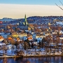 Fahrt durch tiefe Wälder mit Lachsflüssen nach Trondheim mit Krönungsstätte Nidarosdom.