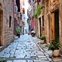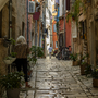 eine gepflasterte Straße in der Altstadt von Rovinj