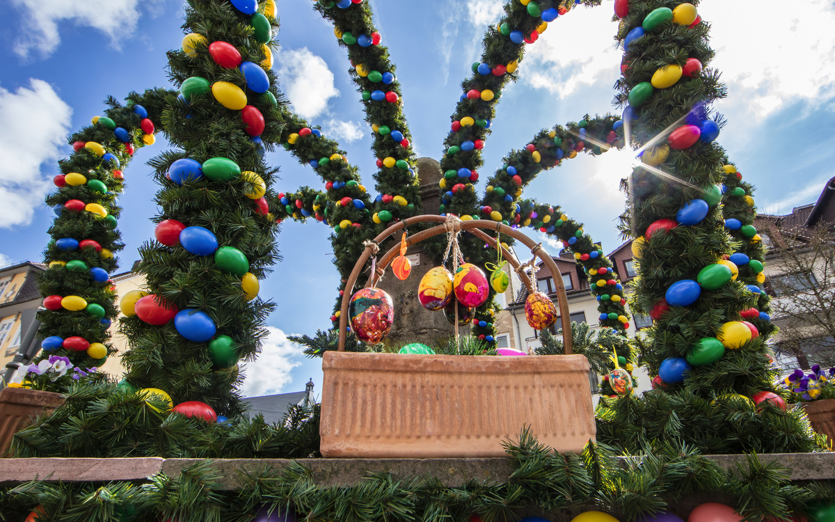 Nach dem Frühstück begeben Sie sich mit einem Reiseleiter auf eine Rundfahrt durch das Drei-Franken-Eck und die Fränkische Schweiz. Sie besichtigen die kunstvoll geschmückten Osterbrunnen - eine fränkische Tradition. Besonders sehenswert ist der Osterbrunnen in Bieberbach. Mit über 10.000 handbemalten Eiern ist er der größte Osterbrunnen der Welt. Am Abend erwartet Sie ein festliches Abendessen im Hotel.