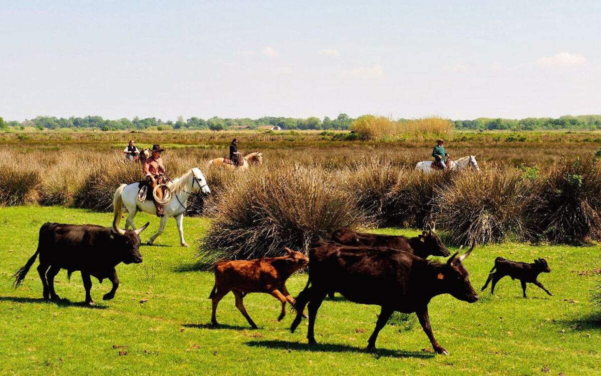 Tauchen Sie ein in die einzigartige Camargue, die Heimat der weißen Pferde, schwarzen Stiere und rosa Flamingos. Die Orte Aigues-Mortes mit seiner mittelalterlichen Wehrmauer und Les-Saintes-Maries-de-la-Mer, mit der wichtigsten Walfahrtskirche Südfrankreichs, werden Sie begeistern. Wir laden Sie zudem zu einer Bootsfahrt auf der kleinen Rhône ein. Am Abend besuchen Sie einen Stierhof (Manade) in der Camargue und verkosten dort ein typisches 3-Gang-Abendessen.