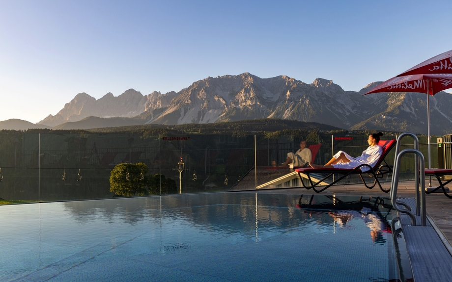 Im 4* Hotel Erlebniswelt Stocker in Rohrmoos haben Sie gemütliche Zimmer mit DU oder Bad/WC, TV, Minisafe und WLAN. Im Hotelrestaurant, dem Dorfstöckl und der Knappenalm werden Sie kulinarisch verwöhnt. Der Wellnessbereich lässt Sie nach einem erlebnisreichen Tag entspannen und bietet Ihnen von der Sonnenterrasse und dem Infinity Pool traumhafte Ausblicke auf das Dachsteinmasiv.