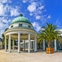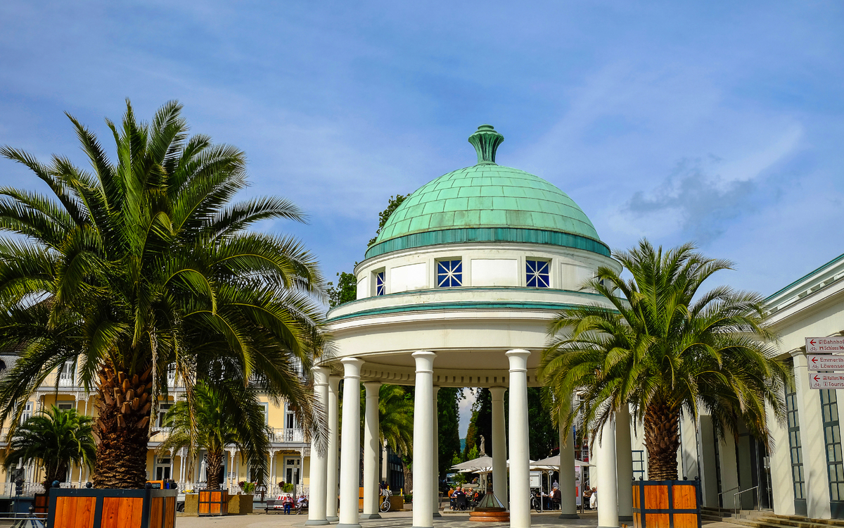 Verbringen Sie einen schönen Tag in Pyrmont, dem Fürstenbad im Tal der sprudelnden Quellen. Schon 1681 verbrachten 34 gekrönte Häupter ihren Sommer hier und sorgten für ein ganz besonderes Flair. Anfang des 20. Jahrhunderts entstand im Kurpark der berühmte Palmengarten, das außergewöhnliche Herzstück des Kurparks und zugleich die nördlichste Palmenfreianlage Europas. Über 500 bis zu 11m hohe Palmen und subtropische Gewächse verschiedener Arten begeistern die Besucher. Aber nicht nur der Palmengarten, der gesamte Kurpark lädt zum Verweilen ein. Er wurde bereits 2005 als ''Schönster Park Deutschlands“ ausgezeichnet.'