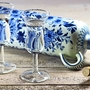 Genever in traditionellen Gläsern mit original Flasche im klassischen Delfter Blau