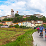 Auf dem Radweg der mächtigen, mittelalterlichen Stadtmauer umrunden Sie das Stadtzentrum und können von dort die „Stadt der hundert Kirchen“ gut überblicken.