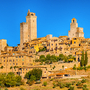 Die Tour beginnt in Tavernelle und führt entlang der typischen Hügel der Toskana: Zypressen, Weinberge, Landhäuser, Burgen und mittelalterliche Dörfer säumen den Weg. Zunächst kommen Sie nach Certaldo, wo Sie die Oberstadt, in der sich das Zentrum befindet, mit einer Seilbahn erreichen können. Weiter geht es nach San Gimignano. Ein Spaziergang durch das historische Zentrum führt Sie u.a. zu einer der besten Eisdielen, der Gelatoria Dondoli. (mittel)